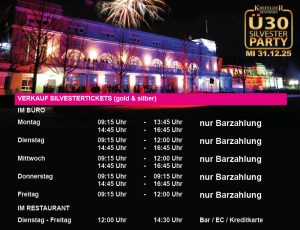 Ticketvorverkauf Gold-Card (mit Buffet) Silvester 2025